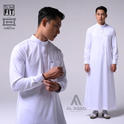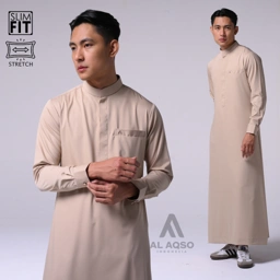 Jubah Slimfit Hilal by Al Aqso dengan cuttingan SLIMFIT membuat jubah terasa nyaman dan juga pas di badan. Cocok digunakan untuk kegiatan ibadah maupun untuk pakaian sehari-hari.Menggunakan bahan TENCEL STRETCH sehingga jubah terasa adem, lembut, leluasa bergerak dan juga tidak menerawang.